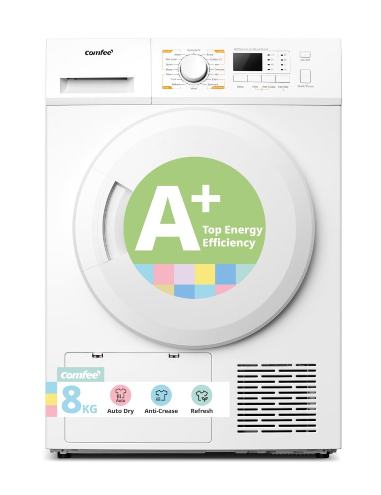 COMFEE’ Freestanding Heat Pump Tumble Dryer,8kg Front Load, A+ Class, 16 Programmes, Auto-Dry,Anti-Crease,Refresh,White,CFG09EH80/W-UK