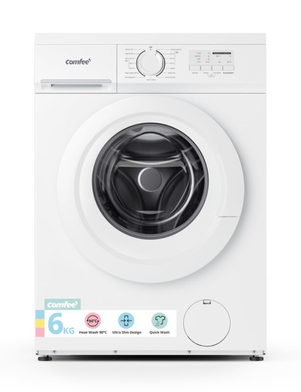 COMFEE’ Freestanding Washing Machine,6KG Load,Heat Wash 90℃,Quick Wash,15 Washing Programs,White-CFE10EW60/W