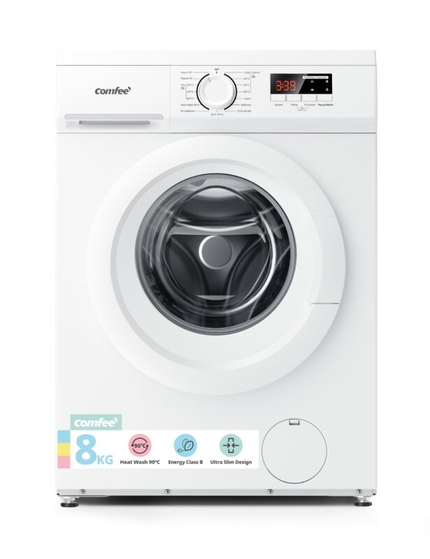 COMFEE’ Freestanding Washing Machine,8KG Load,1400RPM,Heat Wash,Quick Wash,BLDC Durable Inverter Motor,White-CFE12EW80/W