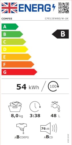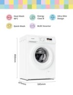 COMFEE’ Freestanding Washing Machine,8KG Load,1400RPM,Heat Wash,Quick Wash,BLDC Durable Inverter Motor,White-CFE12EW80/W