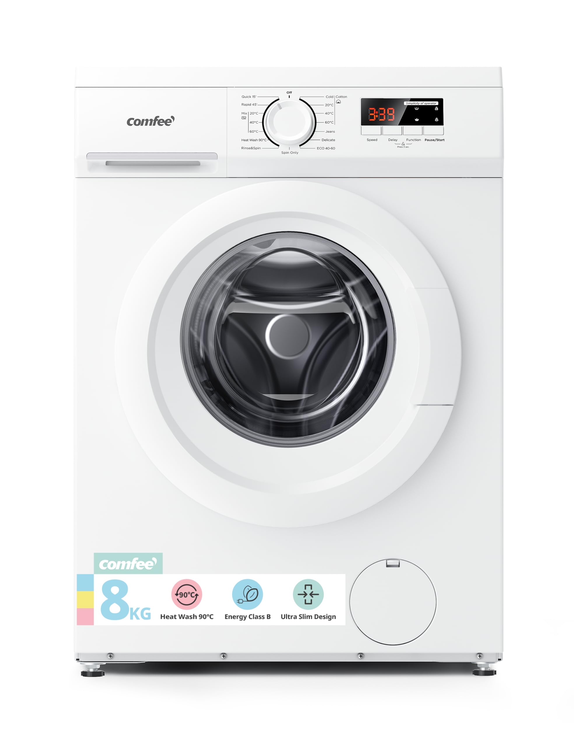- 【Ultra Slim Design】Comfee washer has a depth of just 48cm and is suitable for various living environments, such as under kitchen cabinets, in bathroom corners, or narrow corridors