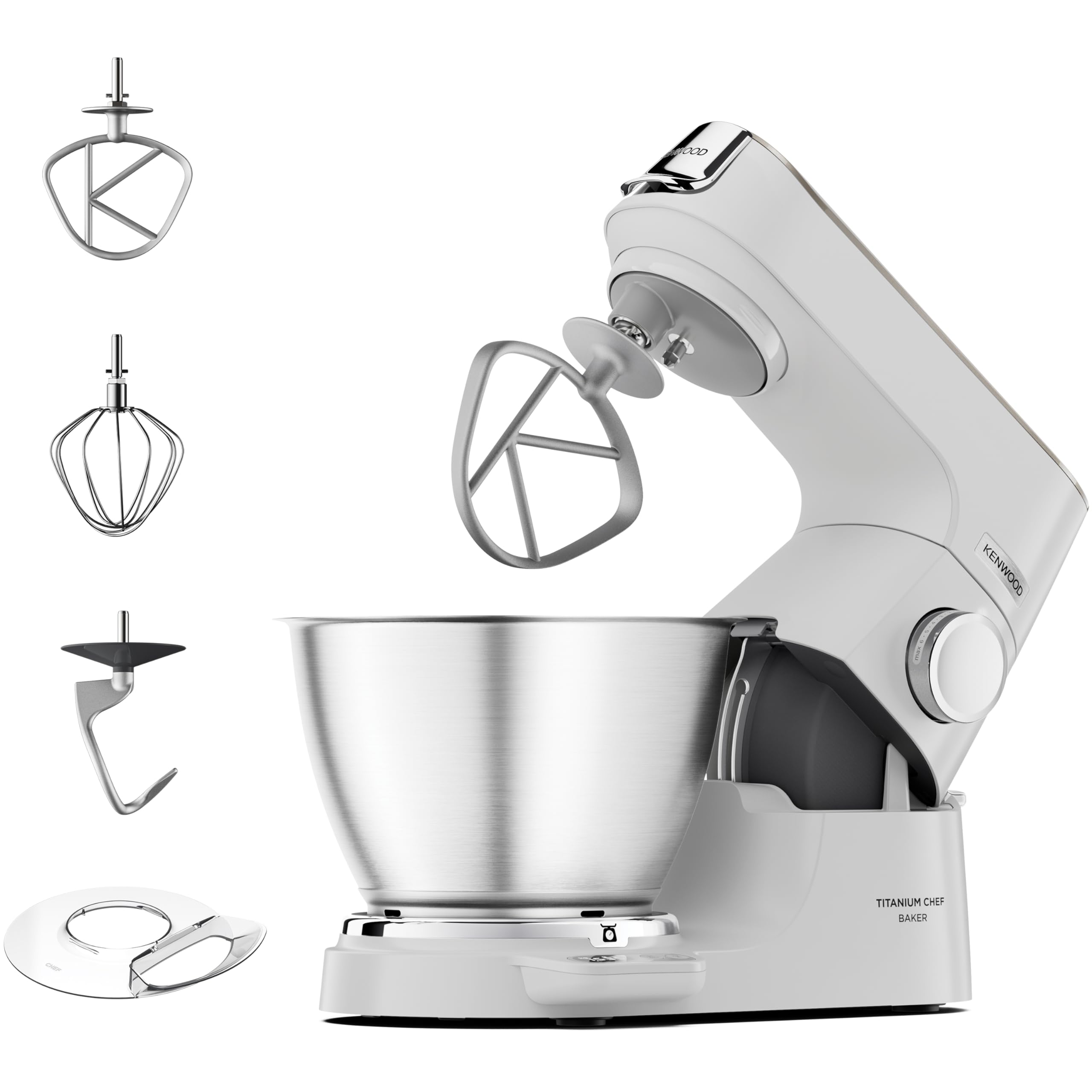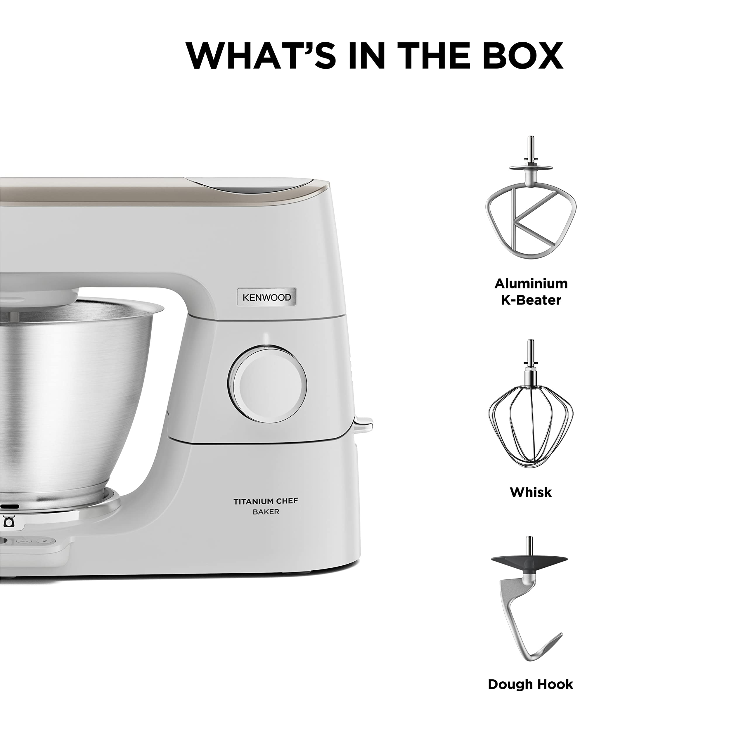 - EASY TO CLEAN The Kenwood food mixer includes a set of 3 stainless steel utensils, a K-beater, a dough hook and a whisk, all dishwasher safe