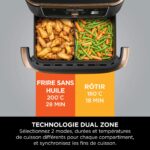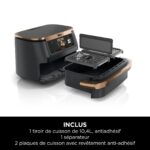 Details: Meet Ninja Foodi FlexDrawer, the extra large capacity oil-free fryer that fits all your meals. Now available in an exclusive Black & Copper finish, with silicone tongs included. Two independent cooking zones to prepare 2 types of food in 2 different ways: Dual Zone technology allows different cooking modes, durations and temperatures to be used in each drawer, then synchronizes cooking ends! Place your food at the same time in the 2 cooking zones. And even with different cooking times, serve it all at once! Remove the divider to double your quantities with the MegaZone 10.4L. The MegaZone is ideal for cooking a leg of lamb with roasted vegetables, a whole meal for the whole family, and much more. Make tasty meals even for 8 or more people, up to 65% faster than a traditional oven*. Using little or no oil, this technology makes cooking guilt-free: up to 65% less fat than traditional frying methods**. Much more than just an oil-free fryer, you can use Air Fry, Max Crisp, Roast, Bake, Reheat, Dehydrate, and Prove modes. Simple to use: Intuitive control panel with one-touch menu selection The 10.4L drawer, divider and two baking trays have a non-stick coating and are dishwasher safe for easy cleaning. Get started with the joys of healthy, quick and easy cooking with our oil-free fryers thanks to the included recipe booklet. Go for Ninja Kitchen. * Test carried out on breaded fish and sausages. ** Test carried out on traditional fries hand-cut fry.